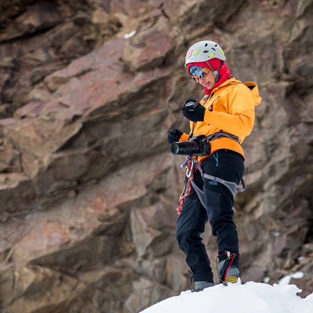 En un sentido práctico, soy fotógrafa especializada en montañismo y carreras de expedición, viajera por naturaleza, madre y esposa.