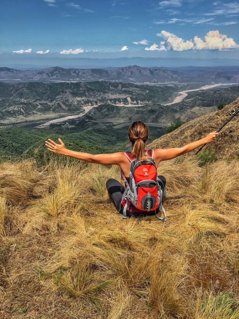 Para senderos que se pueden realizar en un día, llevamos botiquín, sobre todo con antialérgicos ¡porque yo soy alérgica a casi todo!, manta térmica, mucha fruta y algo para almorzar en la cima, algo livianito, aunque a veces nos llevábamos los sándwiches de milanesa que hace mi vieja (pero después de eso viene una larga siesta tirados en el pasto), linternas para la cabeza (muchas veces descendimos de noche), mucha agua, protector solar, GPS, cargador externo para el celular, cámara de fotos…, y obviamente la comida y agua para nuestra perrita Mora.