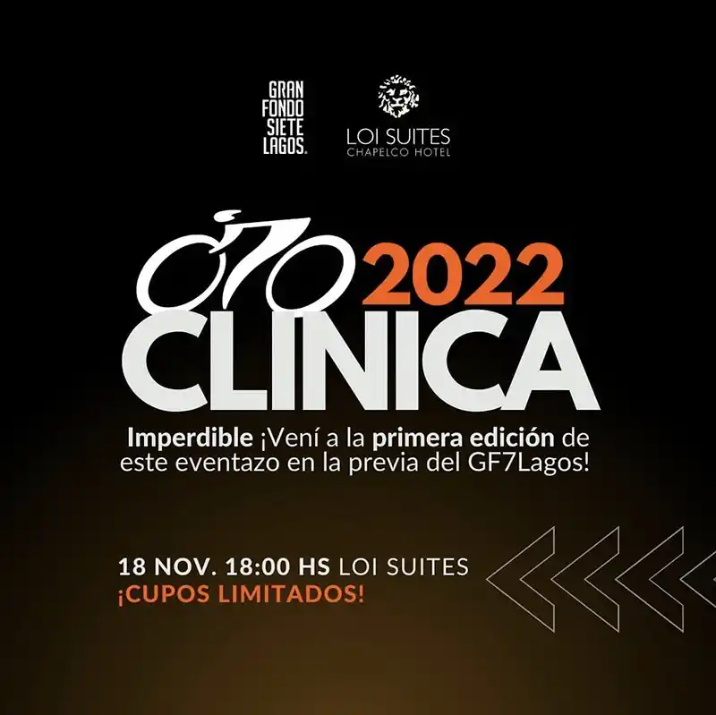 También el día 18 de noviembre a las 18 hs. se brindará una Clínica de Ciclismo en el Hotel Loi Suite de Chapelco Golf con profesionales que darán charlas relacionadas al ciclismo. Las mismas son abiertas para todo público, con cupos limitados. Para reservar tu lugar: info@granfondosietelagos.com